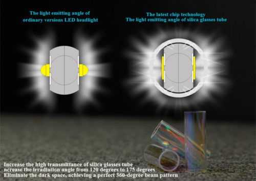 Кто то спишет это на дефект ламп? Я решил проверить ещё одни лампы, причём якобы более мощная модель с 2 вариантами — с насадкой для переломления света на 360 градусов и без…