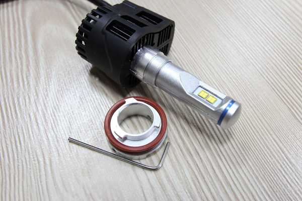 Задняя часть светодиодной лампы находится снаружи, все контакты лампы залиты и ничто не сможет их повредить, так что думаю это лишь повысит охлаждение. У светодиодной лампы снимается посадочное место H7. Я установил сначала юбку в фаре, и далее надел резинку на лампу и вставил в фару она хорошо там расположилось, спокойно и без переделок.