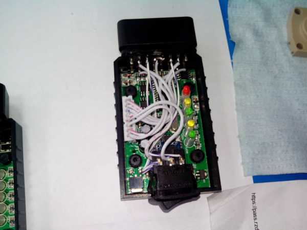 Знакомый красный текстолит, я понял, что этот тоже не будет работать. И действительно, к ЭБУ он не подключился. Видимо китайцы постепенно снижают издержки производства. Может быть большие адаптеры они еще не тронули, хотя вряд ли, уж очень дешево получается. Зато можно кому-нибудь подарить, у кого заработает.