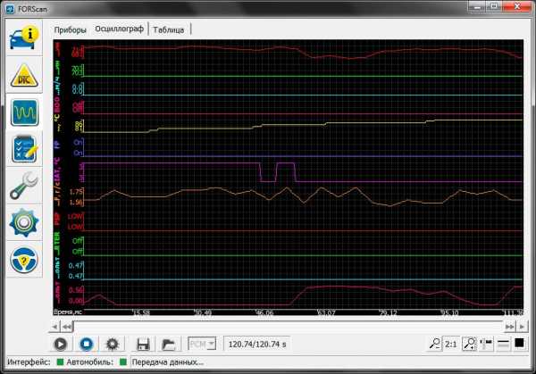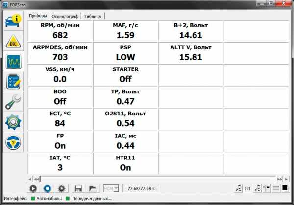 На ноут ставим программулину Forscan, единственную которая по отзывам удачно считывает показания с машины. Получаем достаточно большой список считываемых датчиков (на скринах ниже не все, но и работоспособность всех я не проверял).