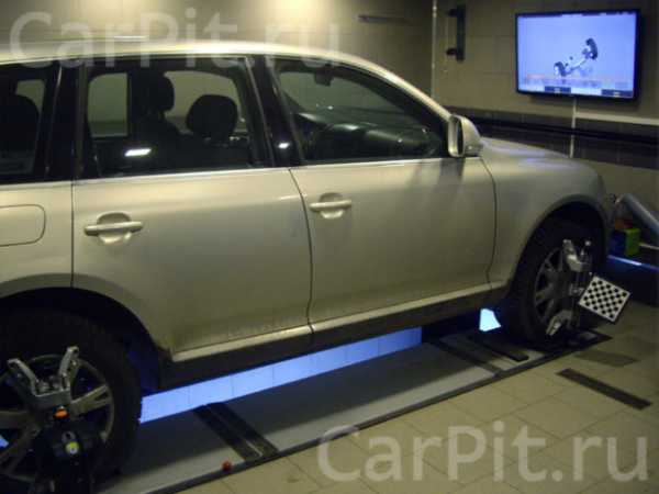 В этом отчете речь пойдет о регулировке сход-развала на Фольксваген Туарег 2008 года выпуска. Особенностью данной машины является пневматическая подвеска и как следствие – перед измерением углов установки колес может потребоваться ее калибровка.