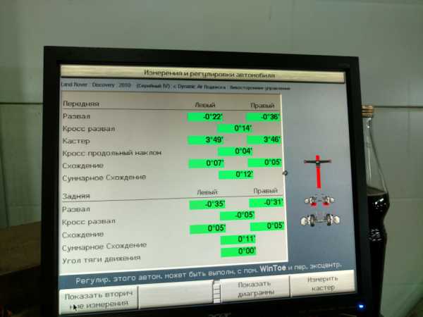 Процедура очень простая, сначала максимально поднять машину, чтобы можно было прибором зацепиться за колеса и когда компьютер покажет развал, переставить векторы с задних колес горизонтально и выставить машину в постоянное ездовое положение.