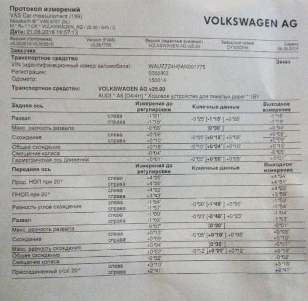 Осталось напечатать отчет о регулировке и отдать машину клиенту. Регулировка сход-развала выполнена.
