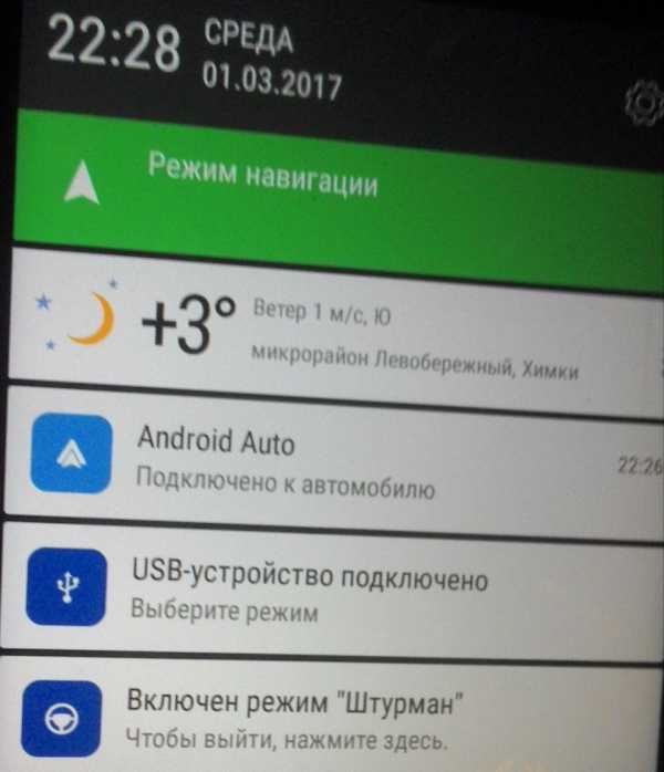 Подключение любым другим кабелем USB — micro USB обеспечивающим «обнаружение» телефона автоматически выводит Android Auto на экран магнитолы (с условием что выставлен правильный режим подключения USB).
