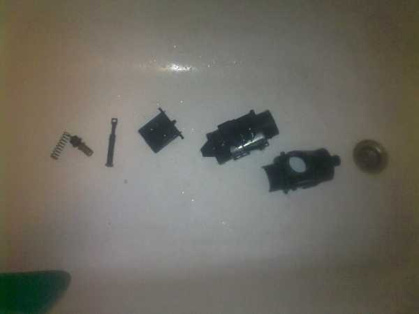 Ура, значит работает! Далее — смотрим пружины и сам шток. Смазав его констинцентной силиконовой смазкой собрал, и обнаружил что оси заслонки сильно разбиты, как и фиксатор тяги… Здесь пришлось наращивать стертые части эпоксидкой… Внизу фото до и после.
