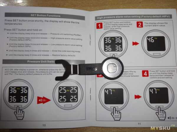 Забегая в перёд скажу что систему TPMS я подключил на столе от внешнего источника питания, и конечно же система не увидела ни одного датчика. Тогда я решил познакомиться с инструкцией, но она оказалась полностью на английском языке. Английским я не владею и обратился за помощью к переводчику Google. Вот что у нас получилось, прошу сильно не ругать.
