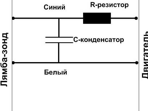 Впаиваем в разрыв одного сигнального провода (синий) резистор на 150к Ом (возможно и другие наминалы от 100к до 2М Ом, я себе поставил на 150к, мощность резистора не важна), тем самым сигнал с датчика уменьшаеться имитируя работу катализатора, ошибка гаснет.