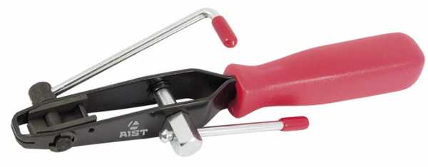 Профессиональный (фото 2): затяжка осуществляется при помощи специального приспособления. С его помощью создается необходимое натяжение ленточного хомута пыльника ШРУС, с последующим обрезанием излишка хомута. Надежность фиксации высокая.