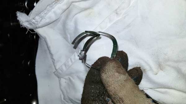 Сначала рассмотрел штатные. Прикольная идея — одна часть жесткая и при складывании вокруг пылника, хомут стягивается. А эта полукруглая часть удерживается под загнутыми усиками.