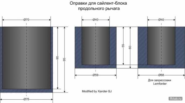 Последним шагом следует выдавливание сайлента из гнезда, в котором он расположен и соединение это весьма крепкое, к слову. Варианта решения проблемы два: 1) везем в автомастерскую, оплачивая лишь выпрессовку; 2) изготавливаем стаканоподобный инструмент, имеющий глубину в 60 мм, высоту – 70 и наружный с внутренним, диаметры в 58 и 35, соответственно, с помощью которого и выдавливаем сайлентблок.