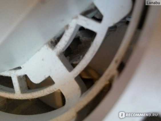 Первую зиму увлажнитель размещался на столе и к концу зимы выглядел довольно сносно. Во вторую зиму переехал на пол, и тут начал тянуть в себя пыль с ламината. Несмотря на регулярную уборку, пыль частично оседает внутри на фильтре на уровне прорезей для забора воздуха (тут ее можно еще смыть), налипает на лопасти вентилятора и на другие элементы внутри верхнего блока, до которых не добраться. Не знаю, насколько это критично с точки зрения бактерий и т.п., но меня это немного беспокоит .
