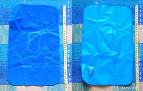 Матрас с обратной стороны. На этом фото со стороны рулетки будут находиться спинки передних сидений. Рядом видны надувные подпорки, предназначенные для заполнения места для ног. Клапанов всего 2 – один для матраса и один на подпорки.