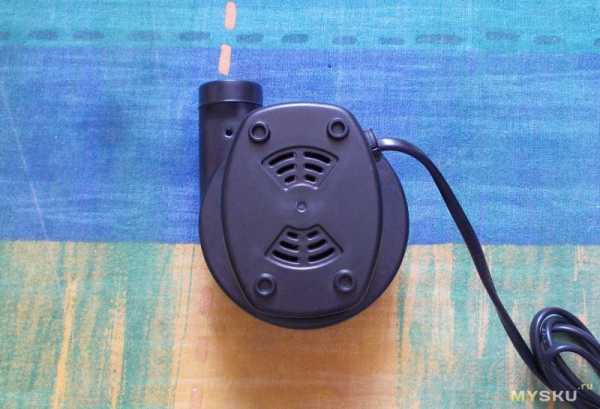 Комплектный насос. Длина шнура в прикуриватель — 1.7 м. Боковое отверстие предназначено для надувания а верхнее – для сдувания.
