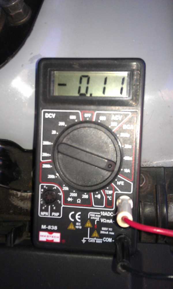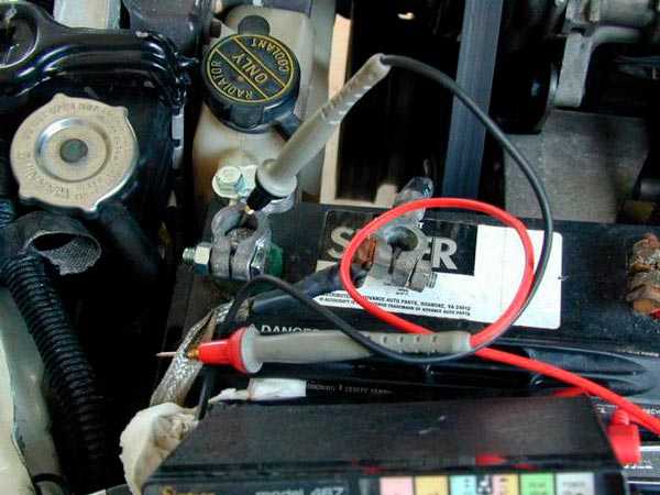 ΠΠ»Ρ ΠΏΡΠΎΠ²Π΅ΡΠΊΠΈ Π³Π΅Π½Π΅ΡΠ°ΡΠΎΡΠ° ΠΌΡΠ»ΡΡΠΈΠΌΠ΅ΡΡ ΠΏΠΎΠ΄ΠΊΠ»ΡΡΠ°ΡΡ ΠΊ ΠΊΠ»Π΅ΠΌΠΌΠ°ΠΌ Π°ΠΊΠΊΡΠΌΡΠ»ΡΡΠΎΡΠ°. ΠΡΠΈΠ±ΠΎΡ ΠΏΠ΅ΡΠ΅Π²ΠΎΠ΄ΡΡ Π² ΡΠ΅ΠΆΠΈΠΌ ΠΈΠ·ΠΌΠ΅ΡΠ΅Π½ΠΈΡ Π½Π°ΠΏΡΡΠΆΠ΅Π½ΠΈΡ. ΠΠ°Π»Π΅Π΅ ΠΈΠ·ΠΌΠ΅ΡΡΡΡ Π½Π°ΠΏΡΡΠΆΠ΅Π½ΠΈΠ΅. ΠΡΠ»ΠΈ ΠΠΠ ΡΠ°Π·ΡΡΠΆΠ΅Π½Π° ΠΏΠΎΠ»Π½ΠΎΡΡΡΡ, ΠΏΡΠΈΠ±ΠΎΡ ΠΏΠΎΠΊΠ°ΠΆΠ΅Ρ ΠΎΡ 12,6 Π΄ΠΎ 12,9 Π. ΠΠ°ΡΠ΅ΠΌ Π½ΡΠΆΠ½ΠΎ Π·Π°Π²Π΅ΡΡΠΈ ΠΌΠΎΡΠΎΡ, Π²ΠΊΠ»ΡΡΠΈΡΡ Π±Π»ΠΈΠΆΠ½ΠΈΠΉ ΡΠ²Π΅Ρ, ΠΏΠ΅ΡΠΊΡ, ΡΠΈΡΡΠ΅ΠΌΡ ΠΏΠΎΠ΄ΠΎΠ³ΡΠ΅Π²Π° Π·Π°Π΄Π½Π΅Π³ΠΎ ΡΡΠ΅ΠΊΠ»Π° ΠΈ ΠΈΠ·ΠΌΠ΅ΡΡΡΡ Π½Π°ΠΏΡΡΠΆΠ΅Π½ΠΈΠ΅ ΡΠ½ΠΎΠ²Π° β ΠΈΠ΄Π΅Π°Π»ΡΠ½ΡΠ΅ ΠΏΠΎΠΊΠ°Π·Π°ΡΠ΅Π»ΠΈ ΠΎΡ 12,8 Π΄ΠΎ 13,4 Π. ΠΠ°ΠΊΡΠΈΠΌΡΠΌ β 14,3 Π. ΠΡΠ»ΠΈ ΠΏΡΠΈ Π·Π°Π²Π΅Π΄Π΅Π½Π½ΠΎΠΌ ΠΌΠΎΡΠΎΡΠ΅ Π½Π°ΠΏΡΡΠΆΠ΅Π½ΠΈΠ΅ Π½Π°Ρ