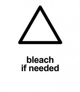 Производители регламентируют также и возможность использования отбеливателей при уходе за элементами гардероба. Если ваша любимая белая блузка слегка пожелтела и вам хочется освежить ее, вернув первозданный цвет, не спешите использовать специальные средства. Сначала вам нужно свериться с обозначениями на этикетке, касающихся процесса отбеливания. Хлорсодержащие средства можно применять только при ручной стирке хлопковых и льняных тканей, волокна других материалов это активное вещество может сильно повредить.