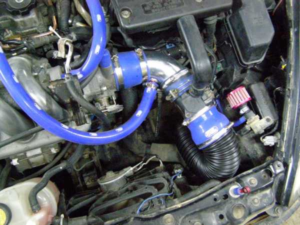 От нулевика как такового мы отказались ибо хороший только АЕМ, а стоит он как пол этой машины. Вместо этого нашлось совершенно гениальное решение. Закрытый стоковый airbox от моей прекрасной supra mk2. Он отлично встал в выделенное ему место.