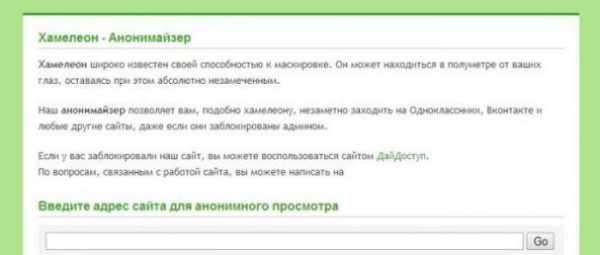 Суть способа заключается в использовании специальных сервисов — анонимайзеров. Принцип их работы следующий. Вы указывайте адрес нужного сайта, и сервис осуществляет подключение к нему, маскируя все ваши сетевые данные. Тем самым, обходя наложенную блокировку.