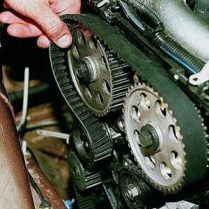 Снимаем ремень со шкивов распределительных и коленчатого валов и вынимаем его.