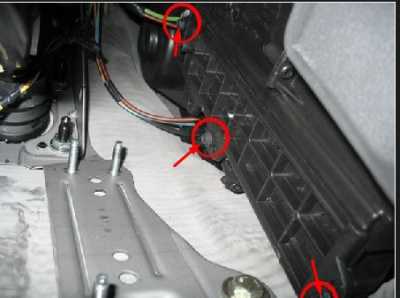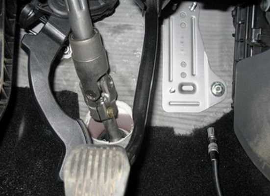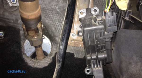 Начать нужно со снятия педали акселератора (газа) — для этого нужно открутить три гайки под ключ на 10 и отодвинуть блок педали в сторонку.