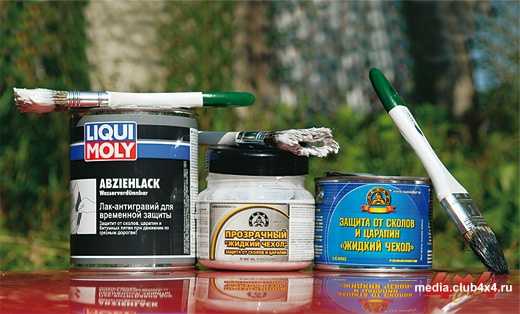 Первопроходец – «Жидкий чехол» от российской компании «Технобазис» – прошел испытания в реальных условиях еще больше года назад. Он легко наносится кистью или валиком, причем благодаря непрозрачности состава видно «непрокрашенные» места. Сохнет слой «чехла» за 15–30 минут. Три слоя дают надежную защиту от касательного воздействия веток и даже сучьев, а также мелких камней. Осадки не оказывают видимого воздействия на покрытие. Снимается слой «чехла» целым куском, особого внимания требуют только края, которые легко стираются тряпкой.